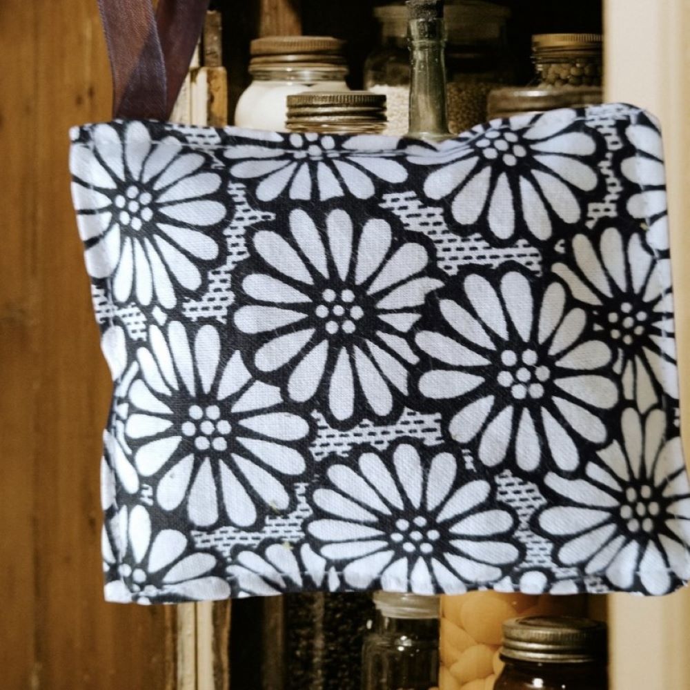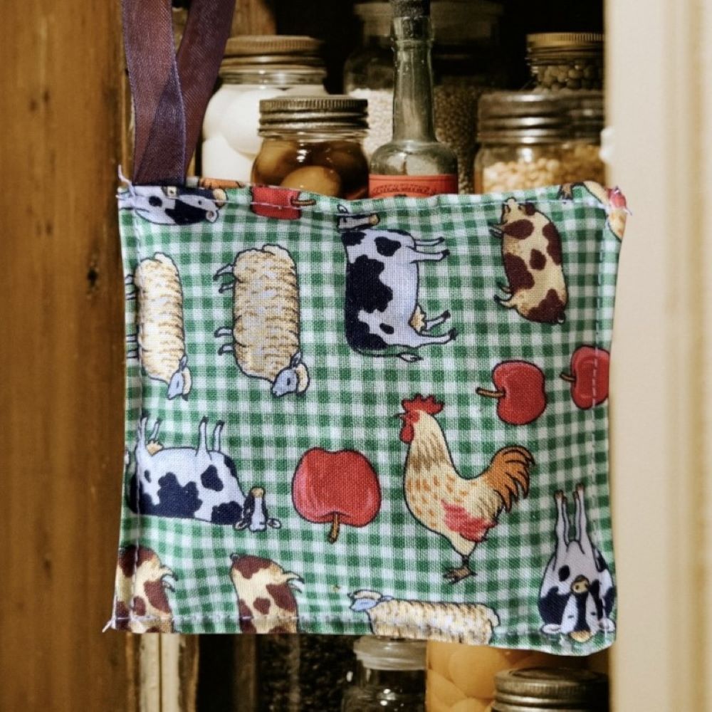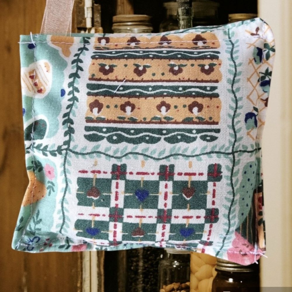 Each sachet measures approximately 9x8cm and comes with a convenient ribbon loop for easy hanging in your food storage areas. These sachets are not only effective but also eco-friendly; made from repurposed materials to minimise waste while showcasing the charm of unique designs selected randomly for each order.